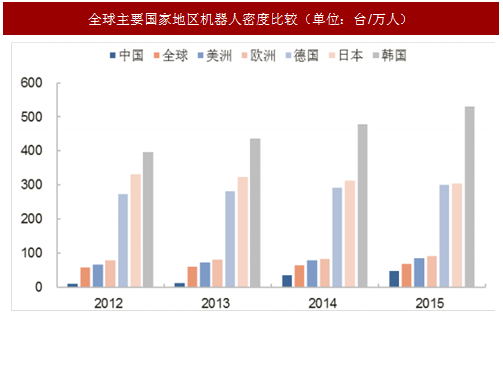 美國發布《先進制造業伙伴計劃》、《制造業創新網絡計劃》,德國發布《工業 4.0》,日本在《2014 制造業白皮書》中重點發展機器人產業,英國發布《英國制造 2050》等。提高我國制造業自動化程度,是重塑我國制造業競爭新優勢,搶占全球制造業新一輪競爭制高點的必由之路。