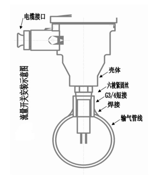 安裝方法:在所用管線上選取一直管段,直線管段長度≥5D(D為直管段直徑),在直管段中部開一中30圓孔,把附帶的短接焊在圓孔上,然后把流量開關旋在短接上(或在管壁上套與流量開關配套的管螺紋連接)