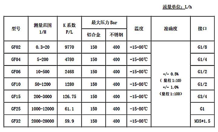 NKGF齒輪流量傳感器流量測量范圍