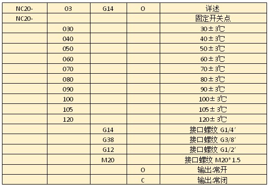 機械式溫度開關NC20系列